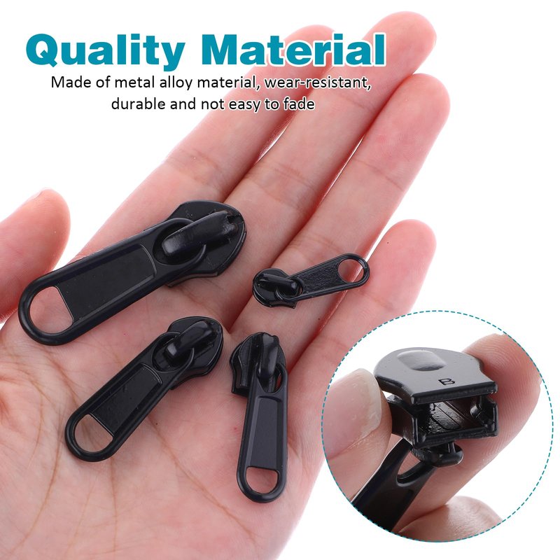 - 【Multiple Sizes&Quantities】 You will get 12 pieces of black metal zipper pulls bulk, enough to meet your needs for zipper replacement of daily luggage, backpack, clothes, and so on. we have four sizes of zinc alloy zipper pull replacement, the zipper repair kit with the most common size zippers(#3#5#8#10), and can resolve most of the zipper replacement needs. Do it yourself with our non locking zipper sliders, for nylon zippers can fit most of the zipper problems.