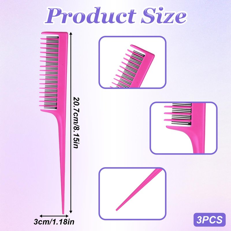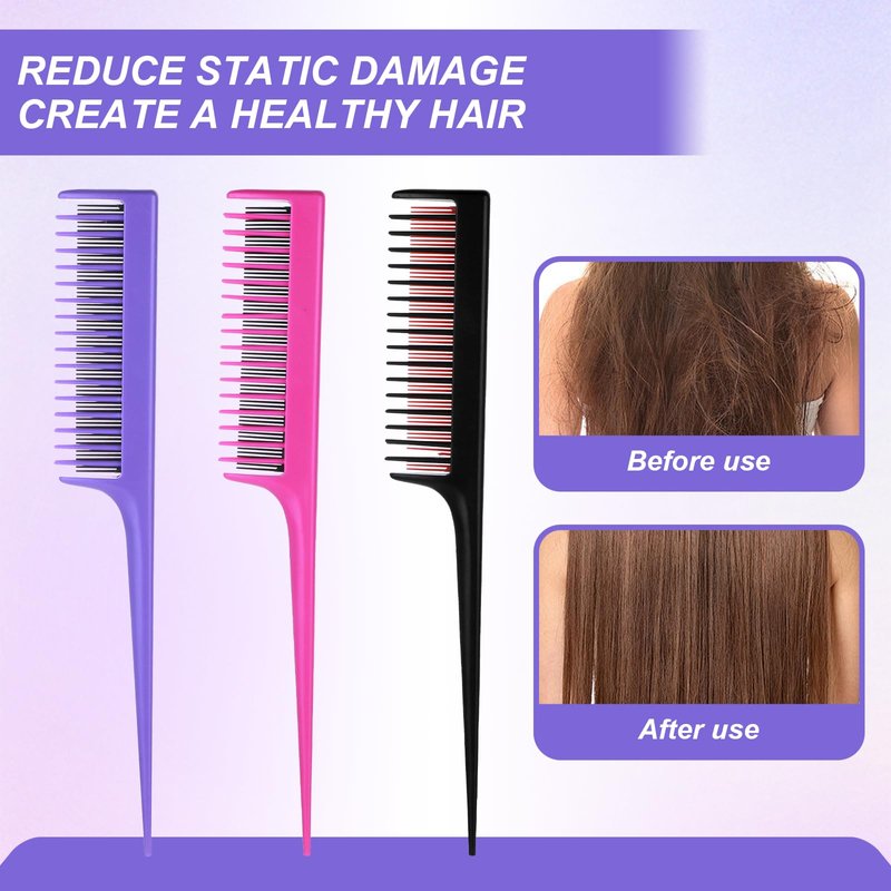 - 【Practical Design】: This tail comb is designed for those with thin, fine, and normal hair. It features 3 rows of comb teeth, provides 3 times the volume, and is perfect for combing, detangling, sectioning, and tidying your hair