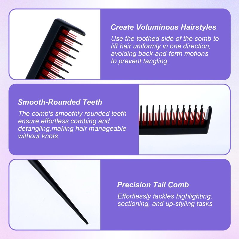 - 【Easy to Use】: Through sectioning areas of hair and combing at the hair root towards the scalp, you can instantly build height and volume in your style or blowout. The tail of the teasing comb is long enough to work with. Sturdy and does not tear your hair