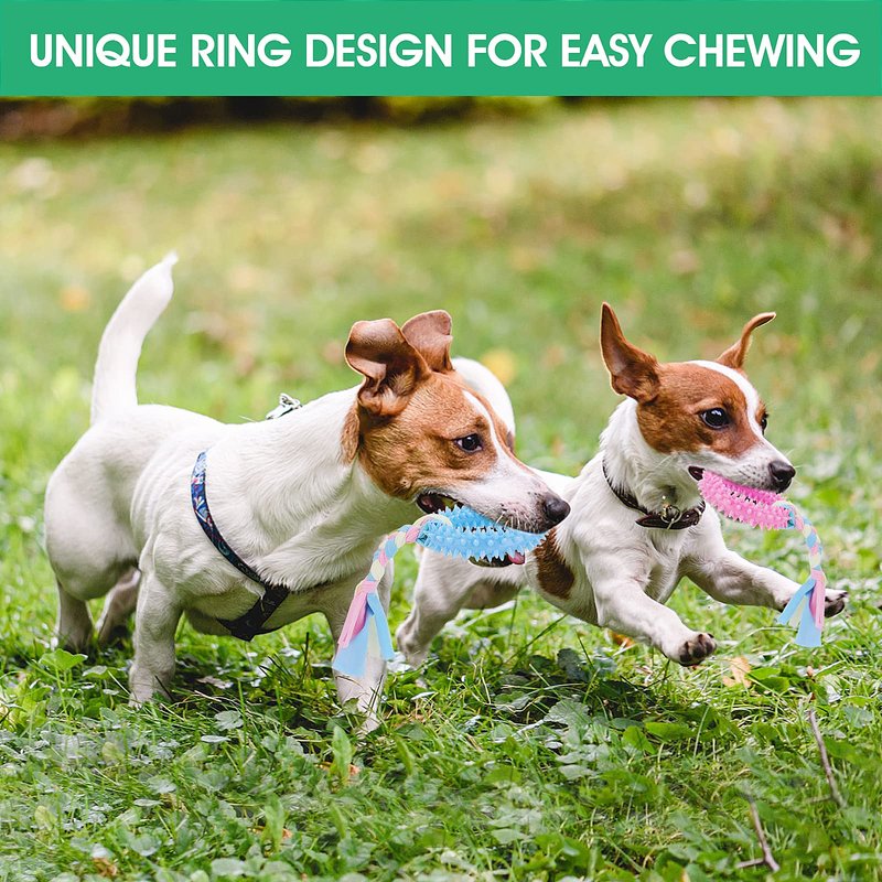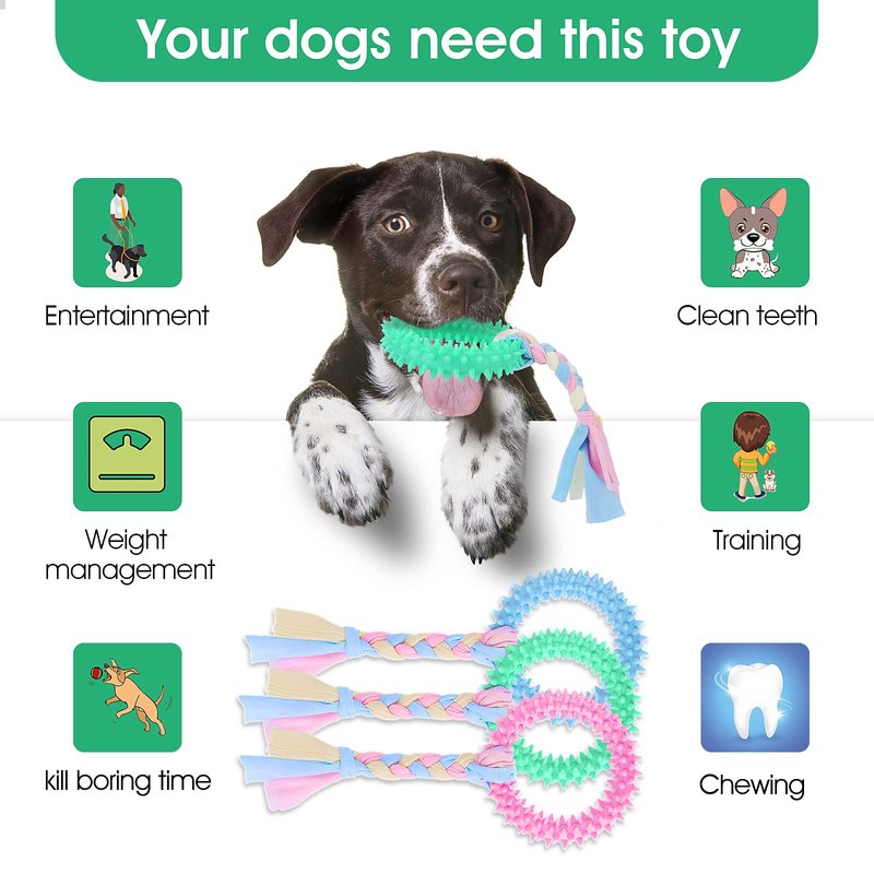 - 3 Packs of Small Dog Chew Toys Set: Our package list comes with lovely 3 x puppy teething chew ring toys in 3 colors(pink, green, blue) with interactive cotton ropes. These durable puppy toys are all favorite for small dogs or puppies. Ideal for small dogs to play interactive games and keeps your puppy happy and busy.