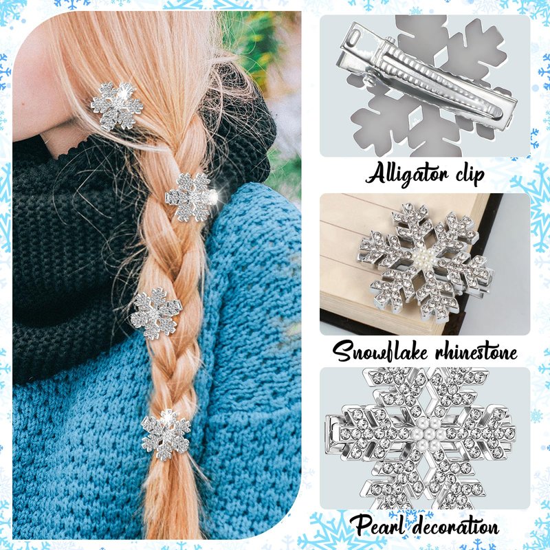 - 【Snowflake Hair Clips】: The Snowflake Hair Clip Set includes 8 crocodile hair clips in the classic snowflake shape in silver, classic and cute, the perfect hair accessory to dress up your teens