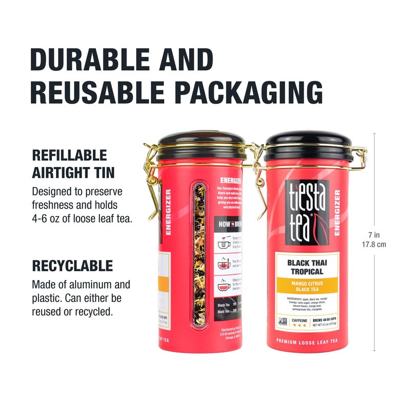 - REUSABLE TEA TIN FOR TEA LOVERS: Our charming and reusable tin is the perfect present for tea enthusiasts. Offering airtight storage, it ensures that your black loose leaf tea remains cozy and fresh for 40-50 cups.