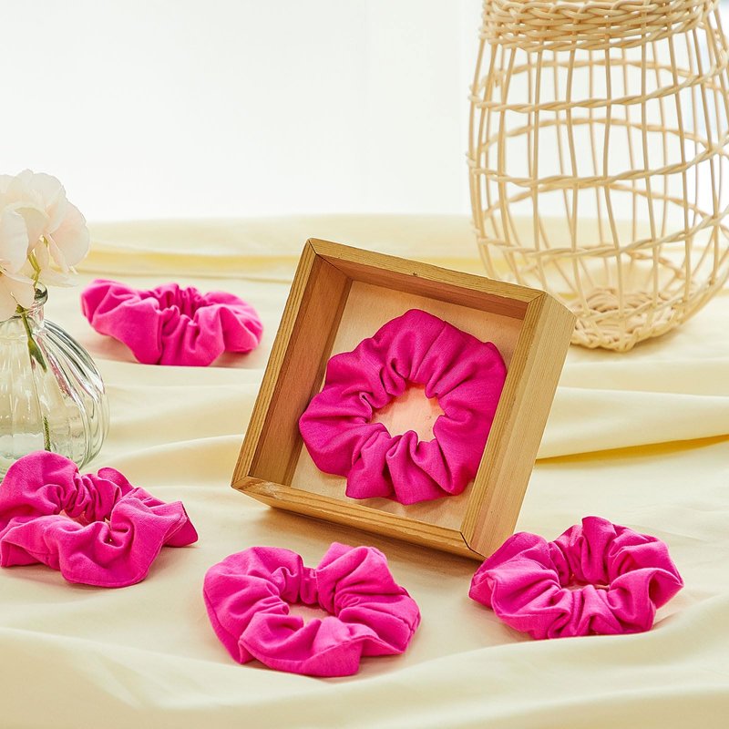 Tigeen 24 Pcs Scrunchies Bulk Breast Cancer Awareness Soft Hair Scrunchies Cotton Solid Colors Thick Elastic Bands Ponytail Ties Holder for Women Girls Kids Hair Accessories(Hot Pink)