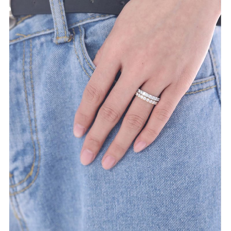 - The design is elegantly simple, with a sparkling ring that can be stacked or worn alone for versatility and style