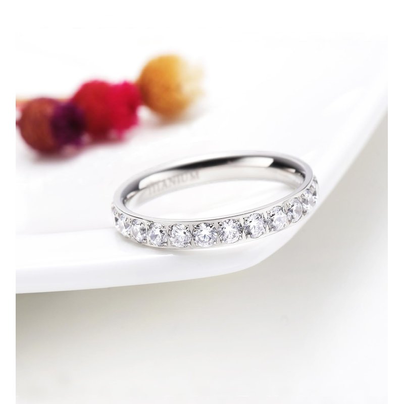 - This stunning eternity ring is crafted from genuine titanium and boasts a sleek 3mm band width