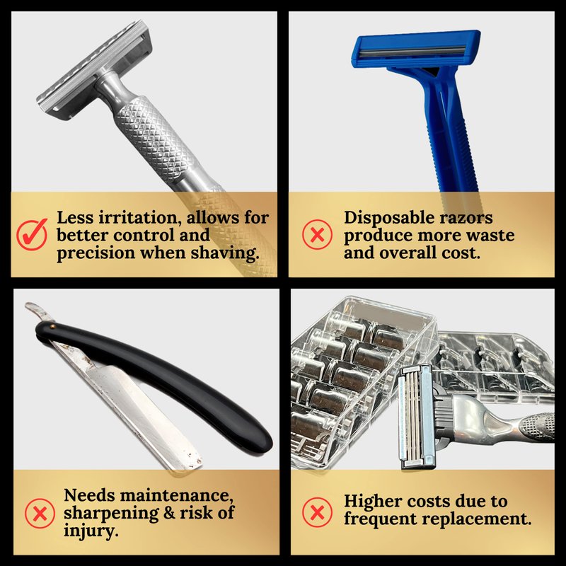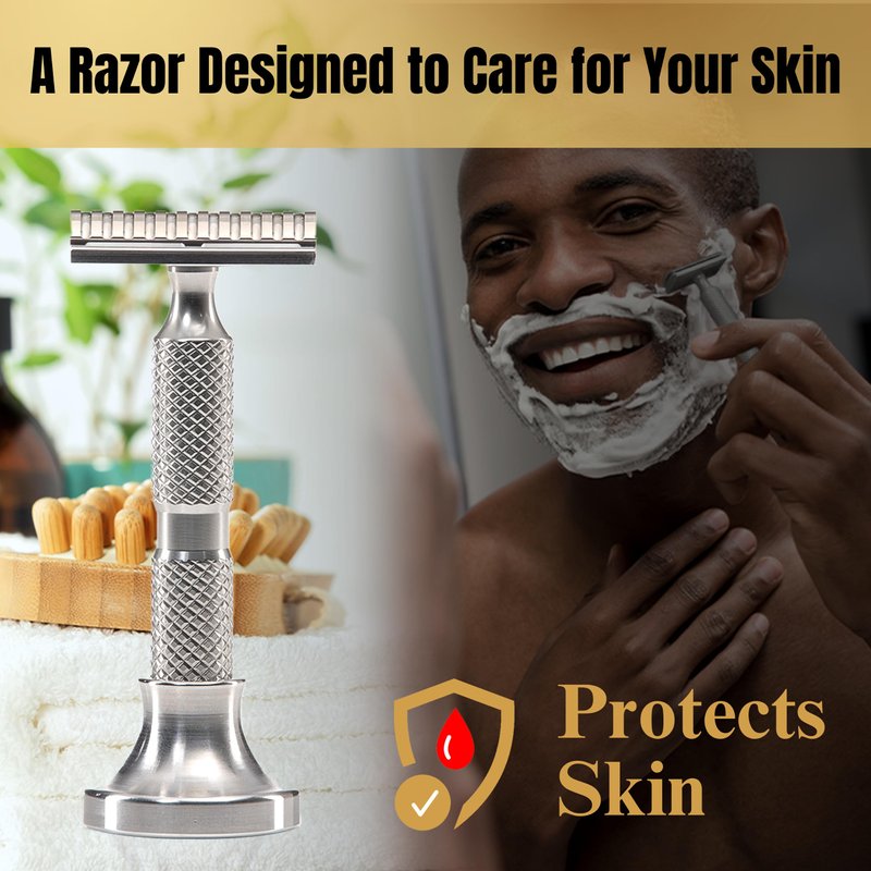 - LUXURY DOUBLE EDGE RAZOR - Provides superior shaving experience that is unmatched by traditional shavers. Our luxury double edge razor is a sustainable choice made from premium materials.