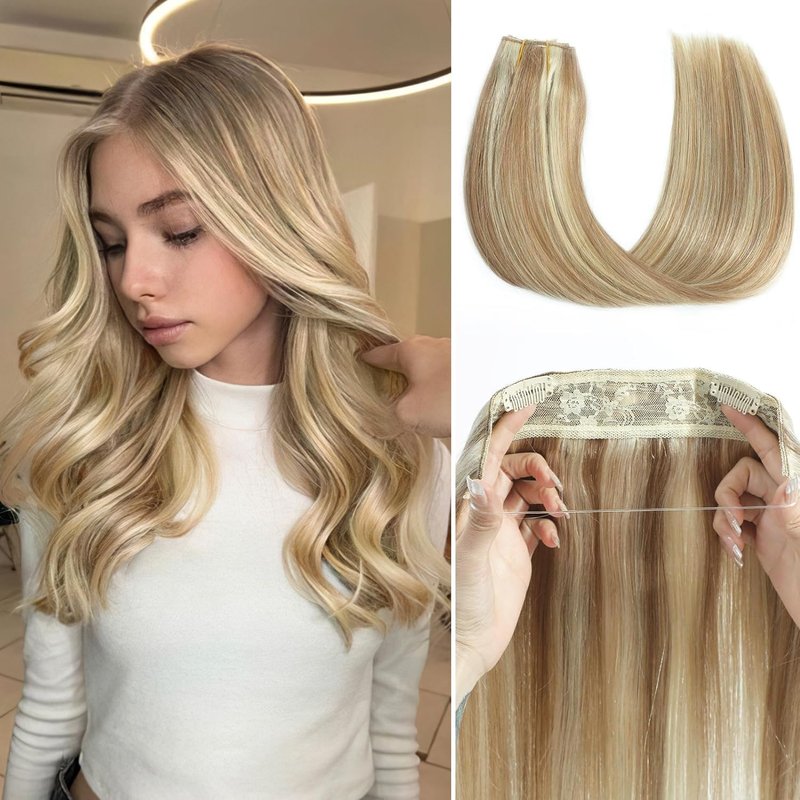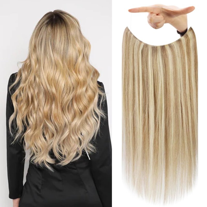 Tinashe Wire Hair Extensions Real Human Hair Straight Hair Extensions 18inch 90g Light Blonde Highlighted Golden Blonde Invisible Wire Fish Line Hair Extensions Straight Human Hair Extensions