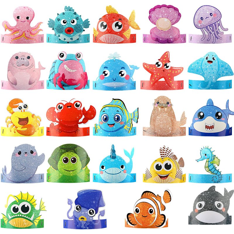 - Sea Animal Design: these birthday party hats adopt bright colors and beautiful sea animal designs, such as crab, fish, octopus, dolphins, sea lions, starfish, seahorse, turtle, lobster and more, a total of 24 kinds of sea animals; These hats look cute and can fulfill your dream of exploring the sea animal world