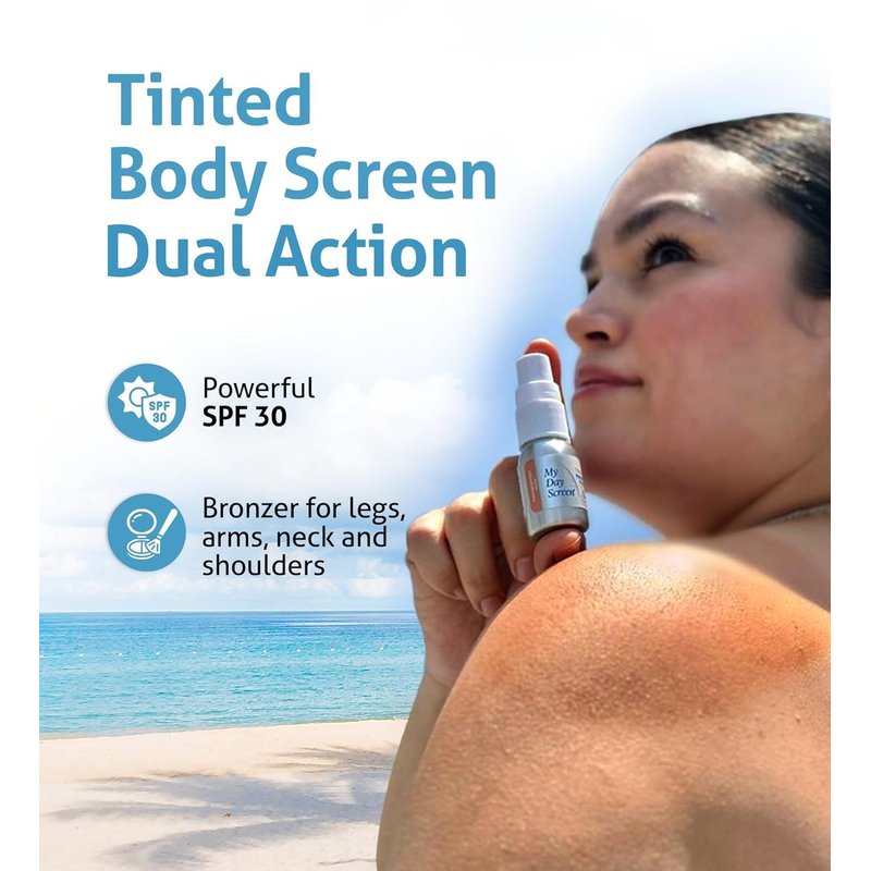 Tinted Body Screen Mini, Body Bronzer, SPF30, Medium Bronze, Clean Mineral Tinted Body Sunscreen, Vegan, Travel Size 0.7oz.