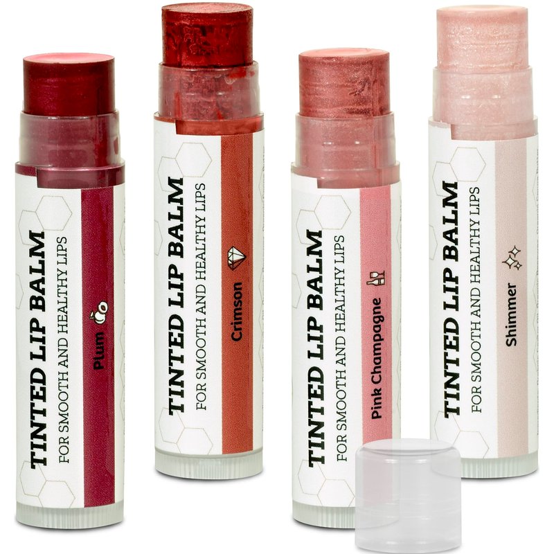 - SUBTLE TINTS for a Splash of Color --- our custom color formulations add a splash of just the right color to your lips to go beyond moisturizing and protecting. Our 4 pack of colors includes Shimmer, Pink Champagne, Plum, and Crimson.