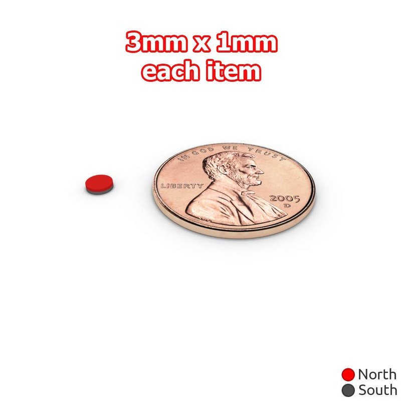 - SIZE: 3mm dia. x1mm think. (approx. 1/8 x 1/32 inches); Grade: N52