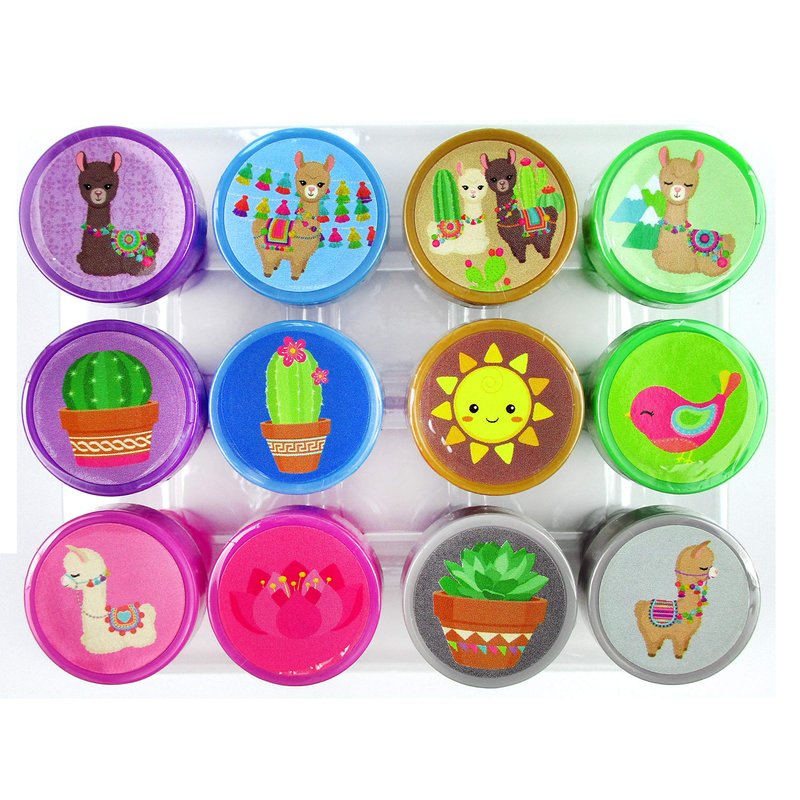 This 12 pcs llama stampers assortment is great as party favors, classroom giveaways, zoo outings and perfect teaching aid. These stampers come in a cute plastic reusable box. Have this stamp assortment at home, in the classroom, and even in art class! Llamas has given us their approval. Our stamps are non-toxic, lead-free, have passed all CPSIA and ASTM testing. Safe for children to use. 1.5 inches tall, 1 inch in diameter.