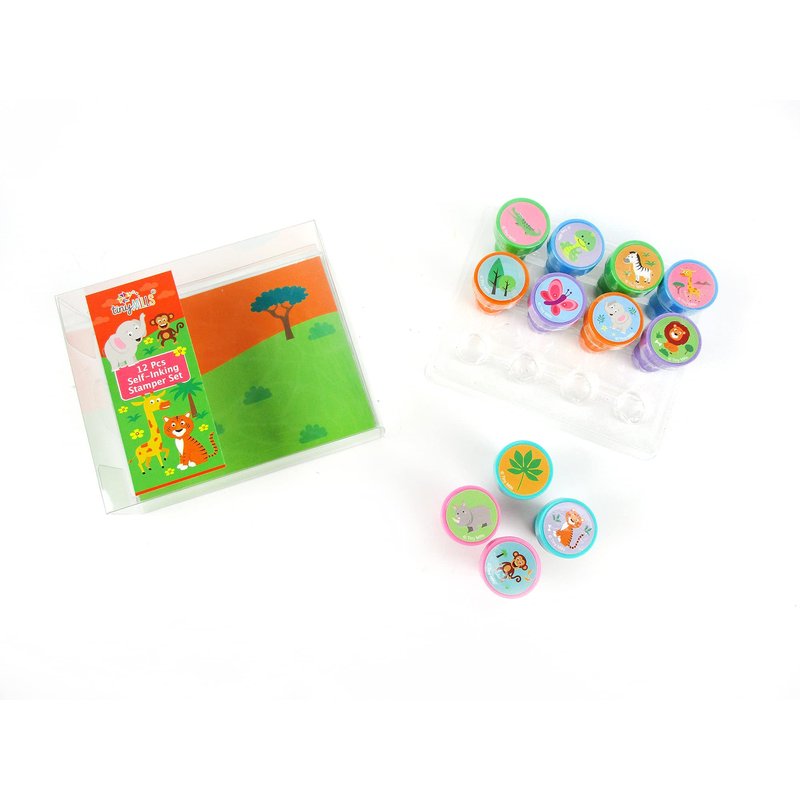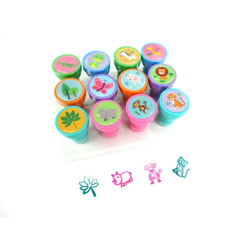TINYMILLS 12 Pcs Safari Jungle Animals Stamp Kit for Kids Self Inking Stamps Gift Jungle Book Party Favor Bag Stuffer Teacher Stamps
