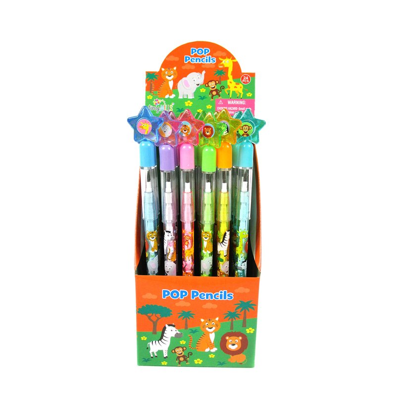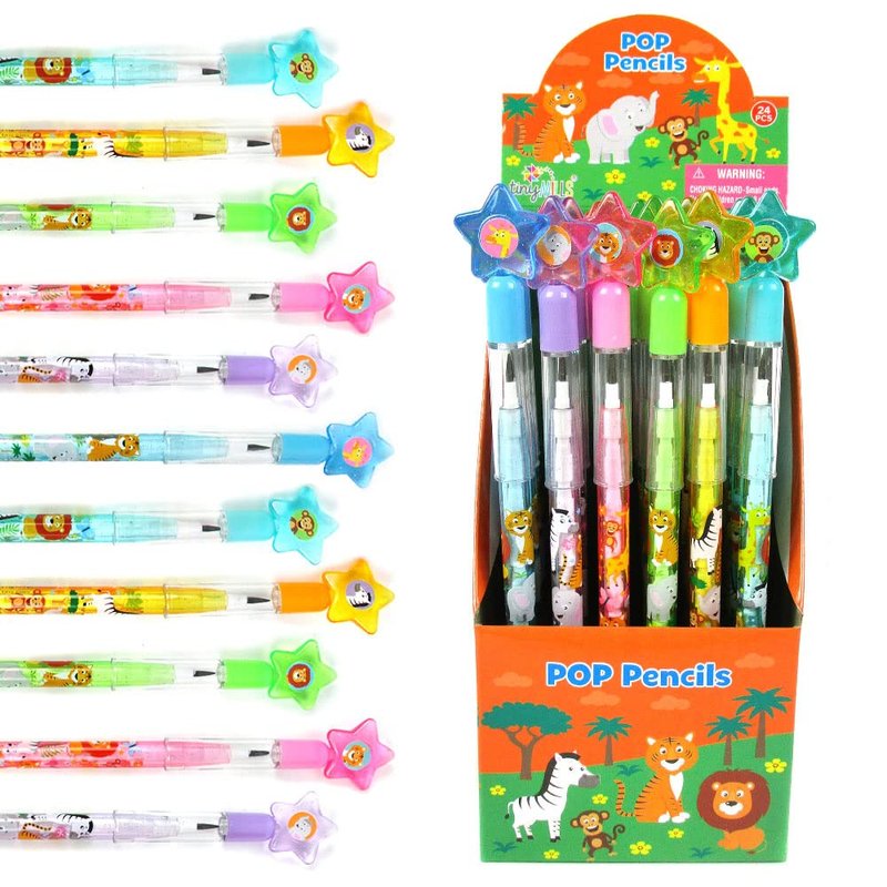 TINYMILLS 24 Pcs Safari Jungle Animals Stackable Push Pencil Assortment with Eraser for Party Favors Goodie Bag Stuffers VBS Classroom Rewards Pinata Fillers Carnival Prize Barnyard Party