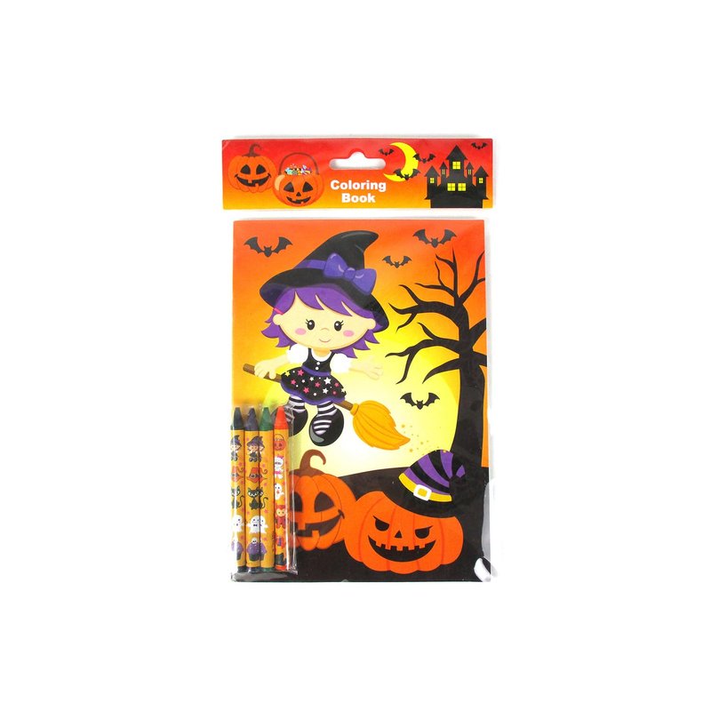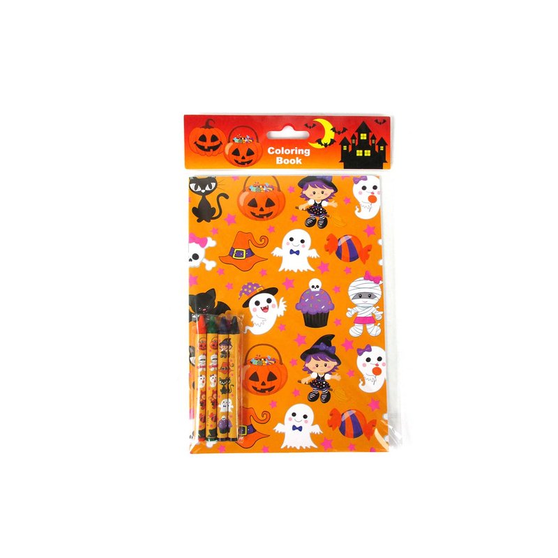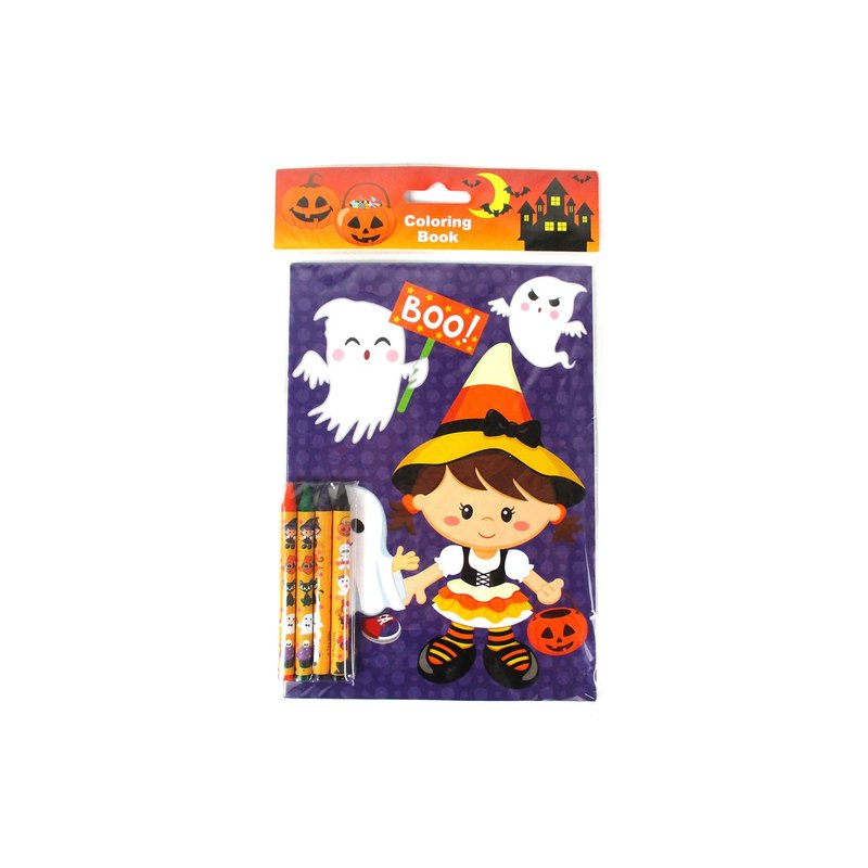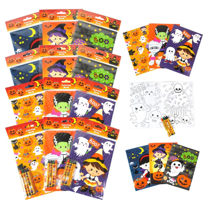 - Halloween parties and Halloween favors are so easy to plan with cute and spooky coloring book set! Each set includes 12 Halloween coloring books and 48 crayons individually wrapped and perfect for both boys and girls of all ages! Kids will love to express their creativity on these Halloween themes such as pumpkins, ghosts, witches, Frankenstein and more!