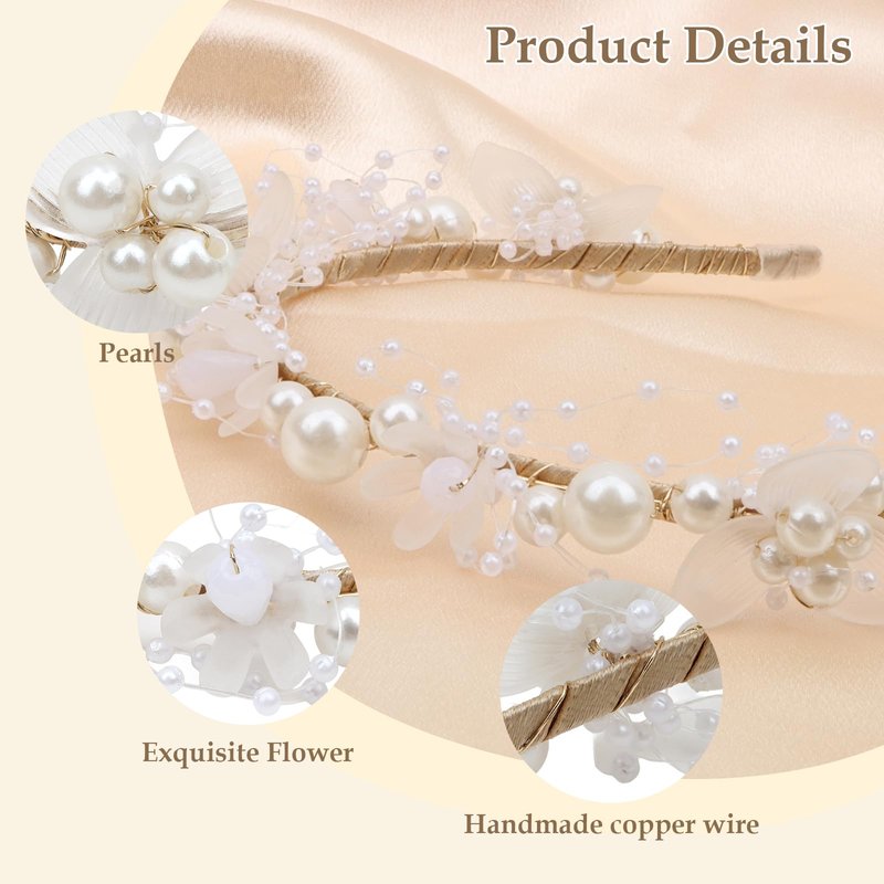- Material: The beautiful headpiece jewelry is made of pearl, plastic flower, brass and alloy, no fading. Makes you look charming, sweet, attractive and like a real princess in any occasion.