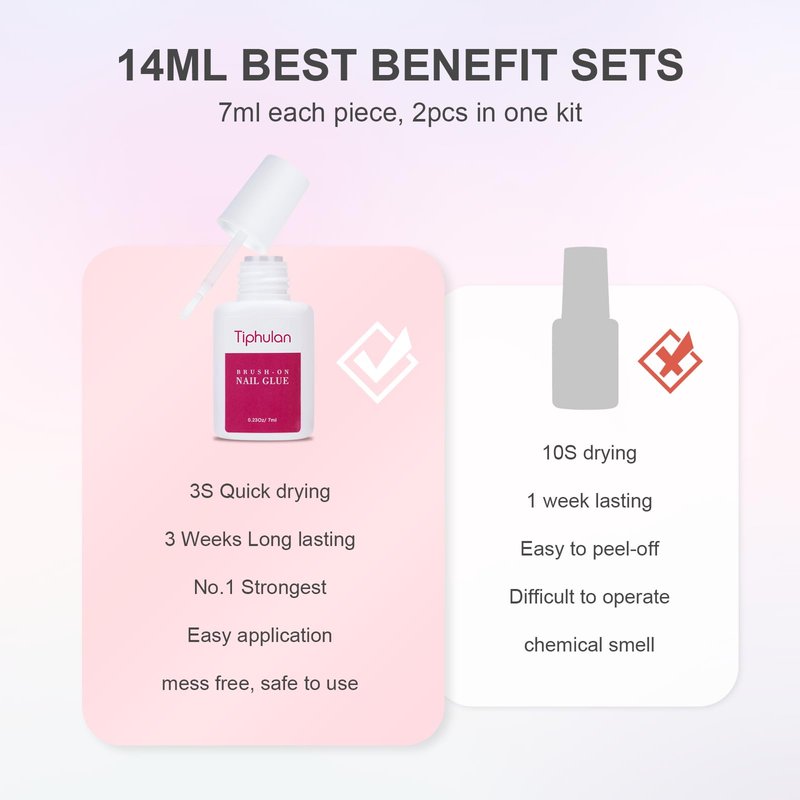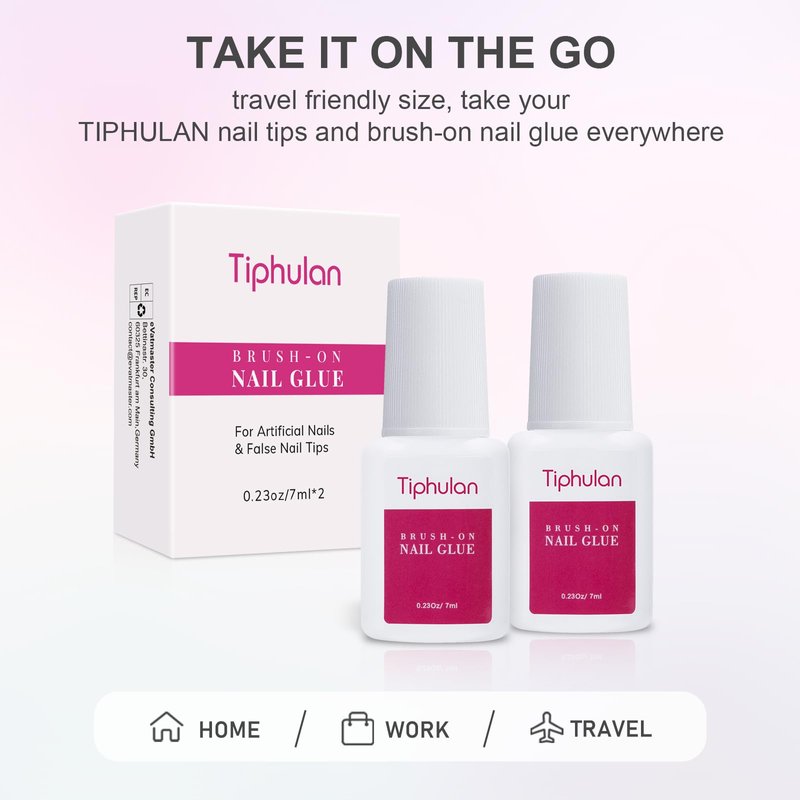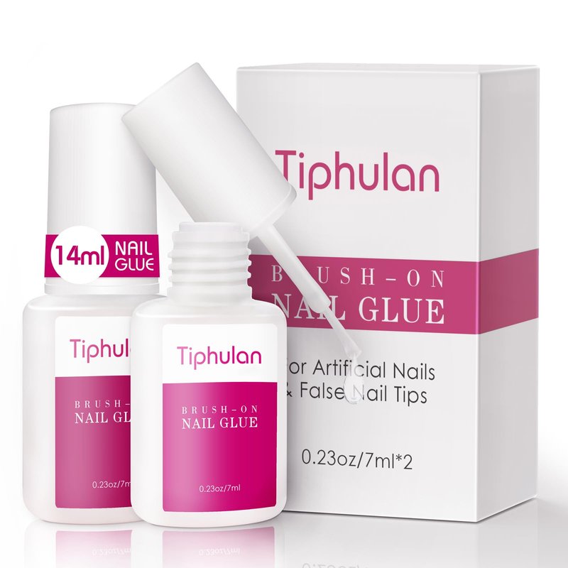 TIPHULAN 14ml Brush On Nail Glue for Press On, Acrylic Nails - Super Strong, Durable & Long-Lasting, Mess Free, Travel Friendly, 0.46 oz(2PCS)