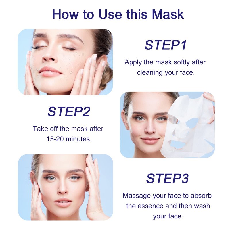 - 【Rich in Plant Ingredients】This face mask skin care contains multiple plant ingredients, such as xanthan gum to moisturize, nourish, and glucan to repair you skin, enhance the activity of skin cells, promote skin metabolism,and anti-aging. This sheet masks also have snow lotus, rose, cellulose, and other plant extract ingredients to moisturize, delay aging, and brighten the skin tone.