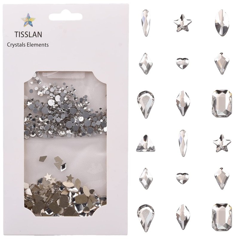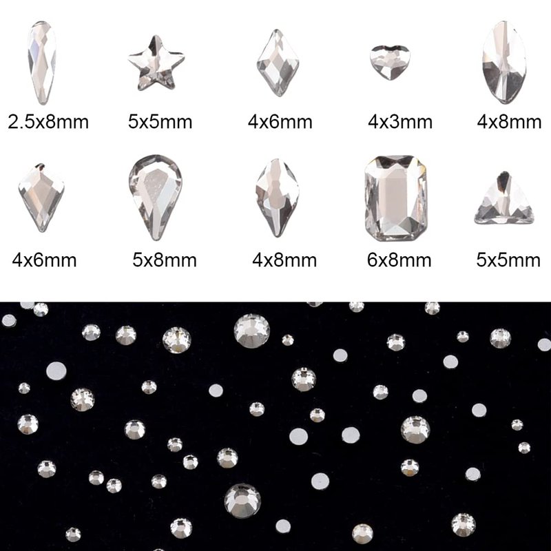 Tisslan 100pcs Flat Back Crystal Clear Glass Shape Nail Rhinestones 720pcs Loose Cystal Beads Nail Art Decoration Craft Accessory