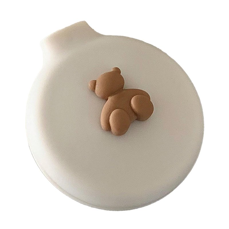 Tissting Hair Brush with Mirror, 7.5cm Round Mini Folding Comb Cute Bear Decor Pop Up Travel Cushion Hairbrush for Women Girls(White)