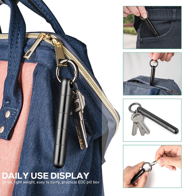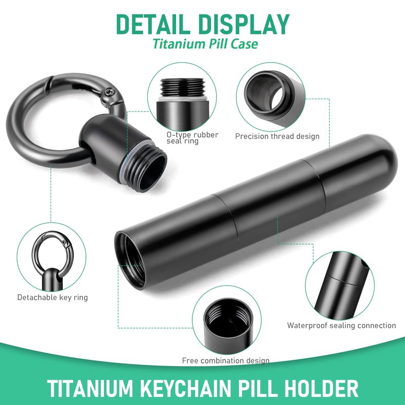 - What You Get- 1 x TISUR black long titanium pill holder keychain +1 x quick release keychain+extra O-seal rubber rings, gift box.