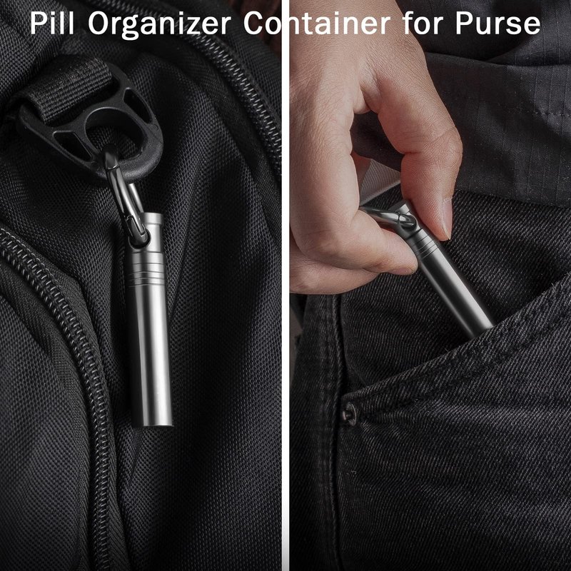 TISUR Small Keychain Pill Holder ,Titanium Metal Travel Pill Case Portable Pill Organizer Container for Purse Waterproof Keychain Pill Holder Medicine Bottle