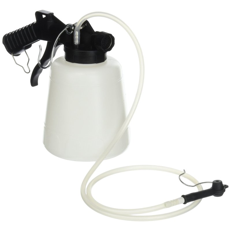 - Titan 1-Liter vacuum brake fluid bleeder uses standard workshop air supply and features a universal rubber fitting that holds securily on brake bleed screw and a transparent drain hose that allows for visual inspection of old fluid during bleeding.