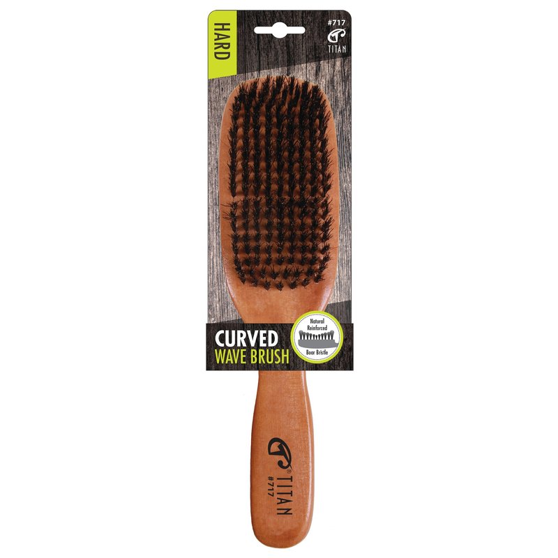 Titan Hard Curved Wave Brush For Men All Hair Textures – 1pc, Natural Boar Bristles Wooden Handle, Wooden Hair Brush