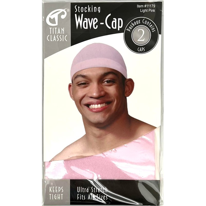 Titan Stocking Wave Cap 2PCS Hair Wrap Stocking Waves for Sleeping Satin Loc Wigs Durags Hat Caps Net Rag Turban Beanies, LIGHT PINK COLOR
