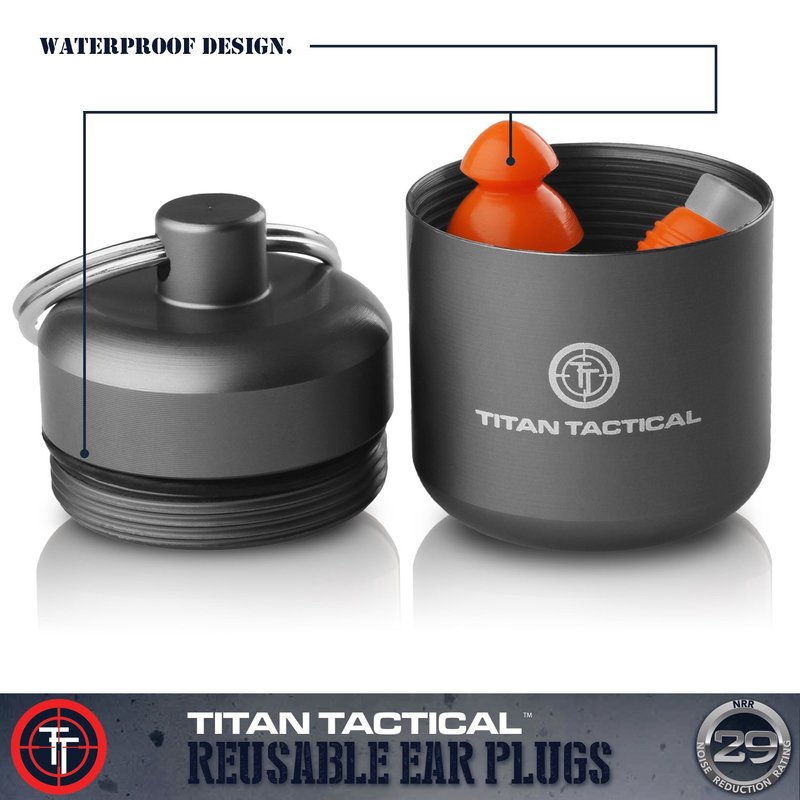 Titan Tactical Eyes + Ear Protection Kit w/ 29NRR Reusable Shooting Ear Plugs + Mil-Spec Clear Range Ballistic Glasses (for Normal + Small Ear Canals)