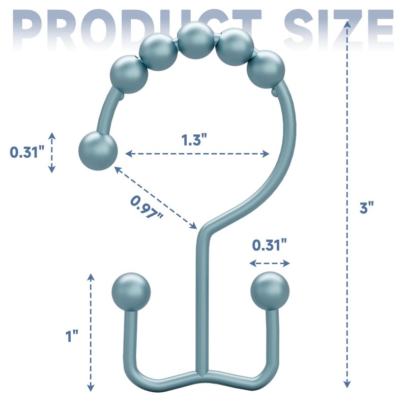- Smooth gliding -Engineered spherical roller balls of shower curtain hooks can glide smoothly and fast across shower rod.