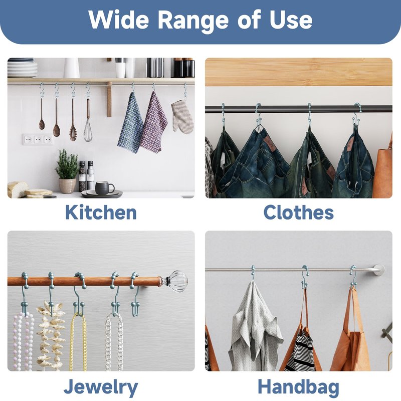 Product Features - Material: Metal - Polished for a Great Look - Easy to Install - Friction Free, Gliding Action Sturdy Quality and Secured Design A. Titanker shower curtain hooks has been specializing in providing affordable and superior products to customers for many years. Durable metal material let shower hooks to support heavy duty shower curtains and liners. B.Engineered spherical roller balls of shower curtain hooks reduce friction and let hooks glide across the rod smoothly with no effort at all. C.Double-Hook Design is not only strong enough to hold up heavy duty shower curtain and liner, but also easy to install to save your time. How to Install A. Put up shower curtain and liner through shower hook. B. Hang up shower hooks with shower curtain liner on shower rod. C. Pull shower curtain hooks left and right to check out if they are tightly installed well.