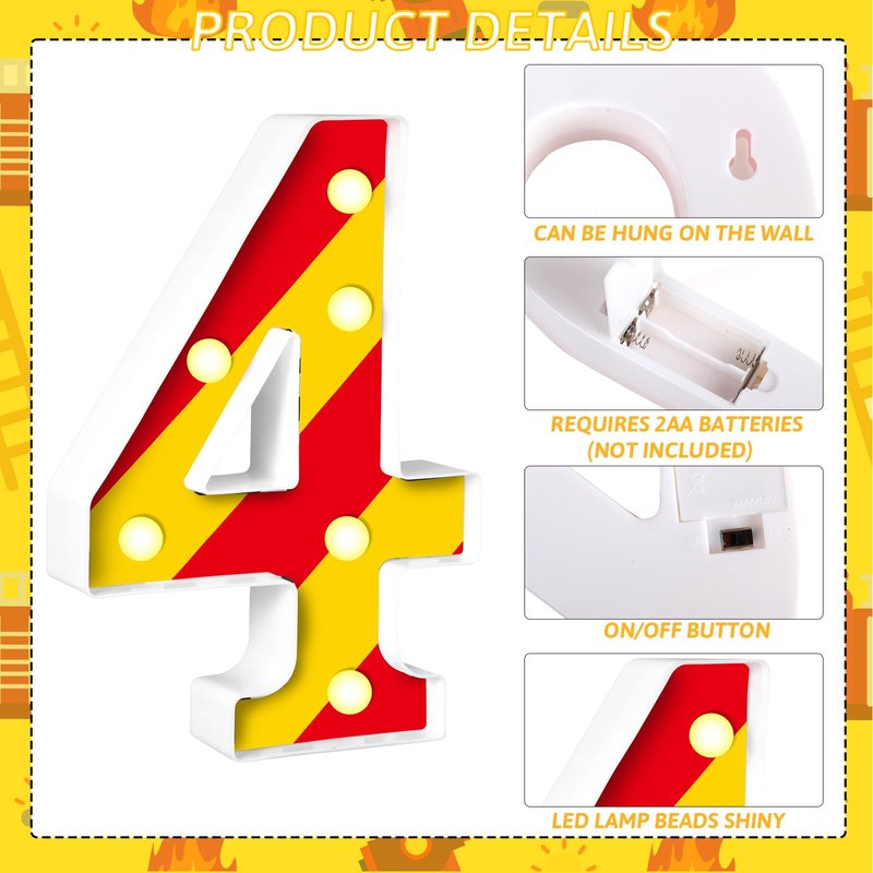 - 🚒【Fire Truck Birthday Decorations】Our Number Lights Designed with special fire truck prints, these numbers are ideal for fire truck themed birthdays and parties;The numbers for kids enjoy a perfect firefighter party with their friends.