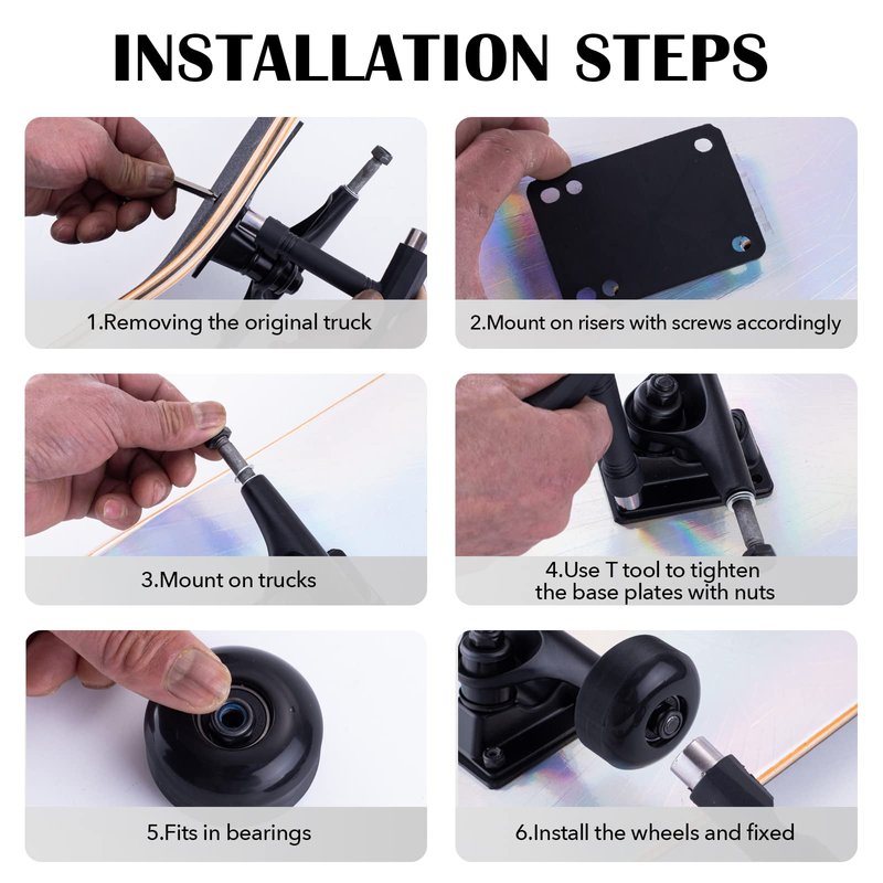 - 【Applicable Models】This skateboard trucks fits 7.5-8" skateboard decks, and the skateboard set fits all 7.5 to 8" skateboard decks.