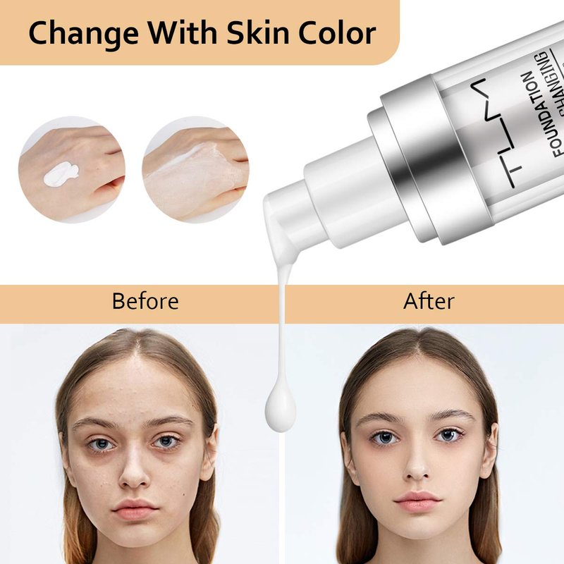 TLM Colour Changing Liquid Foundation Hides Wrinkles & Lines,Lightweight,Natural,Anti-allergic,BB Cream Makeup Base Concealer Cover Moisturizing Fluid for all Skin Tone SPF 15,Moisturizing Cosmetic