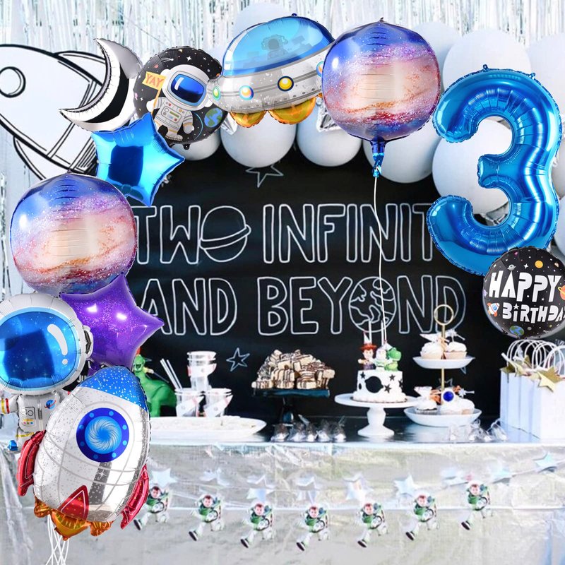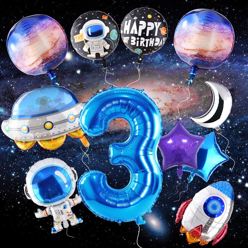 - 🌌Package Include:Space Party Favor Kit include 1x Astronaut Balloon,1x rocket foil balloon,1x UFO Balloon,2x Space Balloons,2x17.7 inch happy birthday astronaut foil balloon, 1x 18inch silver Moon foil balloons, 2x18inch star foil balloons, 1x 40inch Space number 3 balloon,it total 11 pcs
