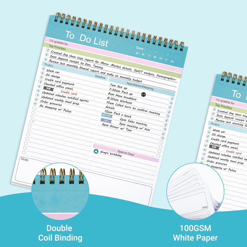 - SPIRAL-BOUND & PERFORATED - Spiral bound design with perforated page, so you can fip over the page smoothly or just tear off.
