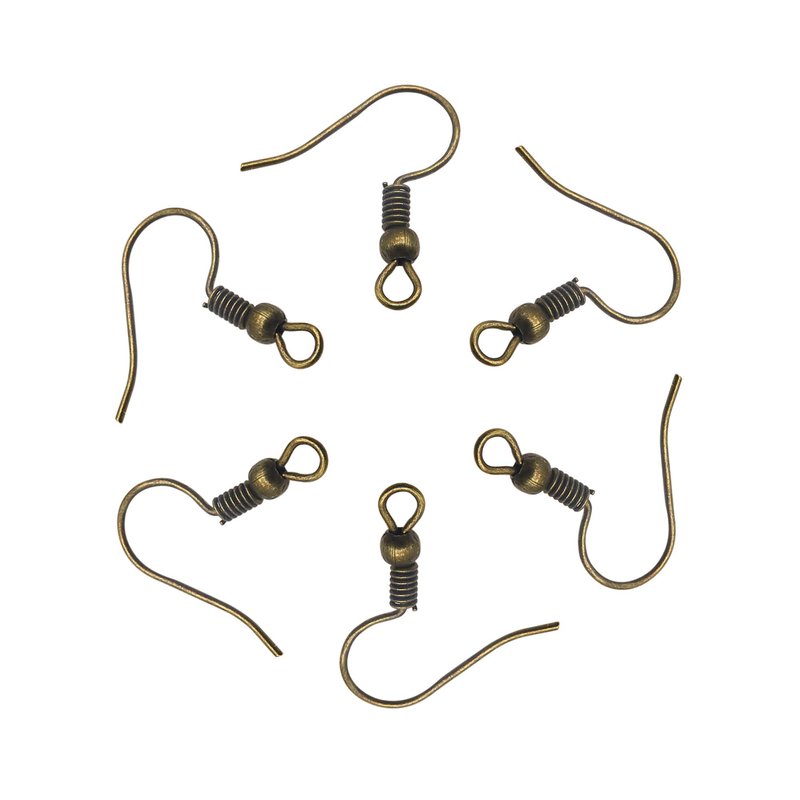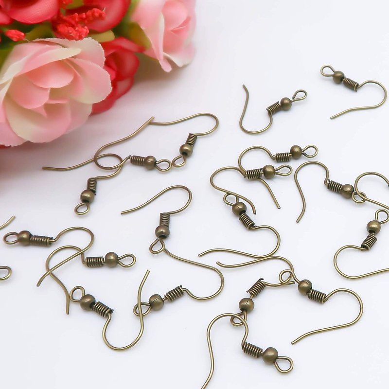 TOAOB 100pcs Earring Hooks Hypo Allergenic French Ear Wires with Ball and Coil 18mm Antique Bronze Fish Hook Earrings Making Supplies Jewelry Findings