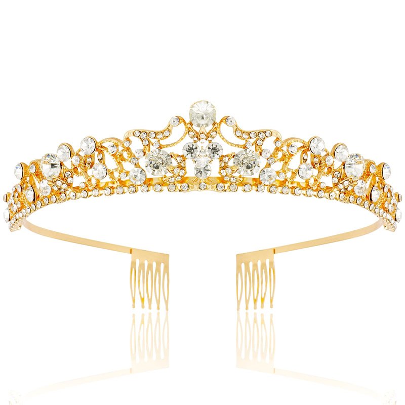 Wedding Tiaras for Bride, Gold Tiaras and Crowns for Women, Princess Tiara Rhinestone Bridal Tiara, Small Tiara, Quinceanera Tiara Birthday Pageant Wedding Halloween Costumes