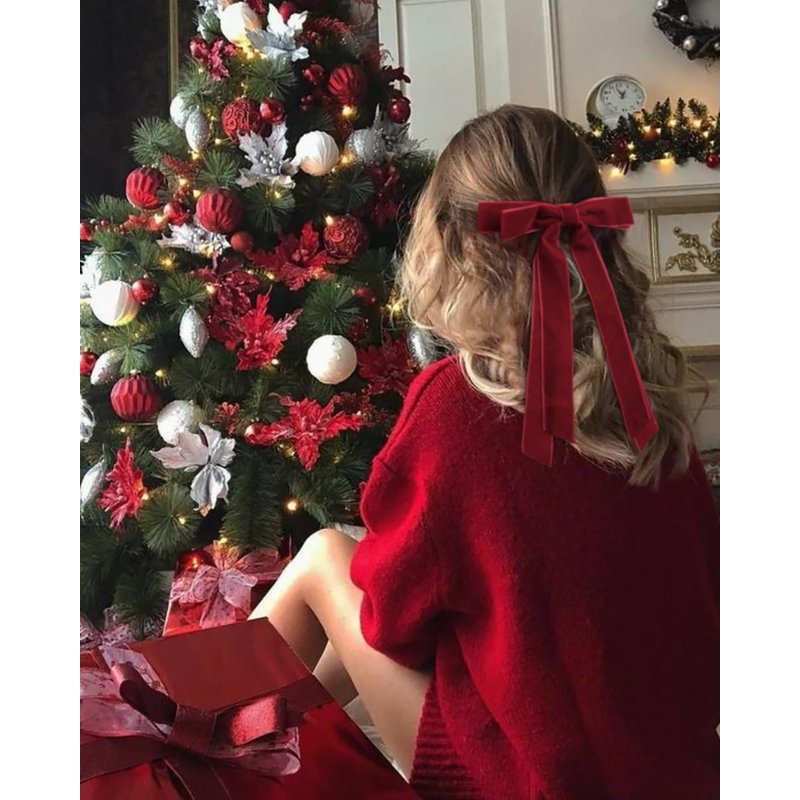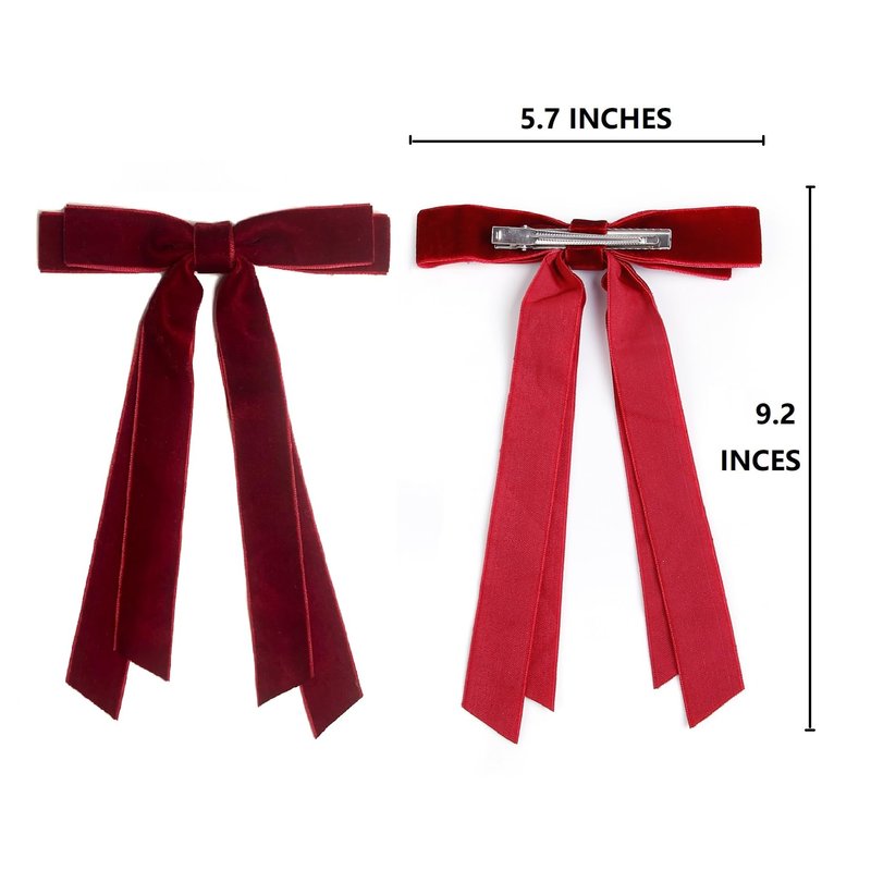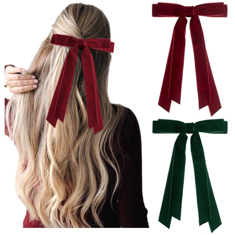 - The Christmas hair bows set includes two stunning velvet hair bows, burgundy velvet bow and green velvet hair bow, versatile enough to match any wardrobe. Wore it for holidays, Christmas but can definitely be worn fall through winter.
