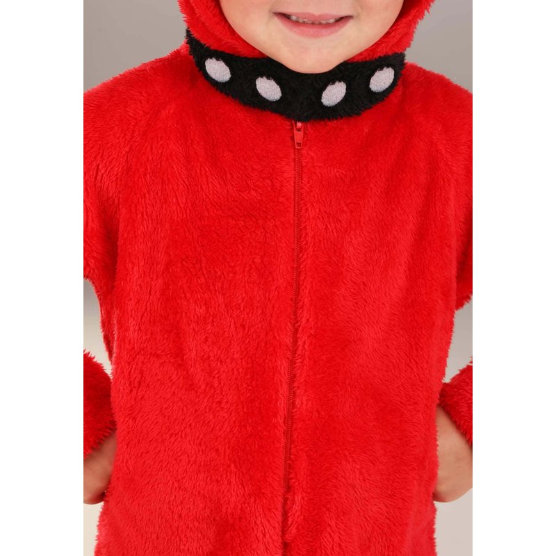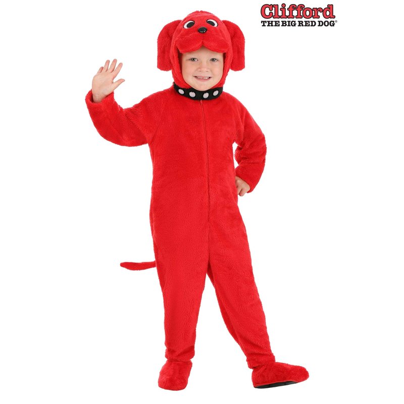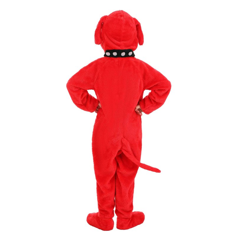 This Toddler Clifford the Big Red Dog Costume will help your little one feel just like Emily Elizabeth's sweet, giant pet. It includes a jumpsuit that zips up the front and is made of red plush fabric. Attached foot covers conceal the feet and a long tail is sewn to the seat of the outfit. A black plush dog collar printed with white dots surrounds the neckline. Pull up the hood to show off its dog ears and embroidered and soft-sculpted details that show off Clifford's famous face!