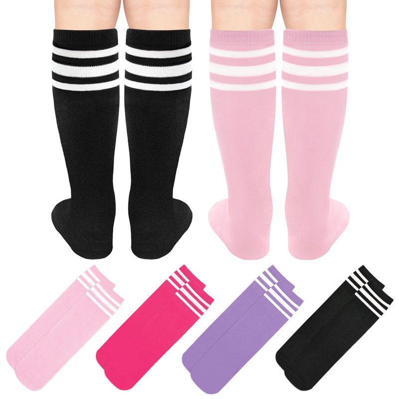 - HIGH QUALITY MATERIAL: The kids soccer socks are made of high quality cotton fabric with nice elasticity, which is super soft, breathable and durable. The toddler knee high socks are skin-friendly to wear and they will not irritate children's skin. In addition, nice sweat absorption effect makes kids more comfortable when they playing. Besides, the youth soccer socks are not easy to fade and pill, so children can use them for a long time.