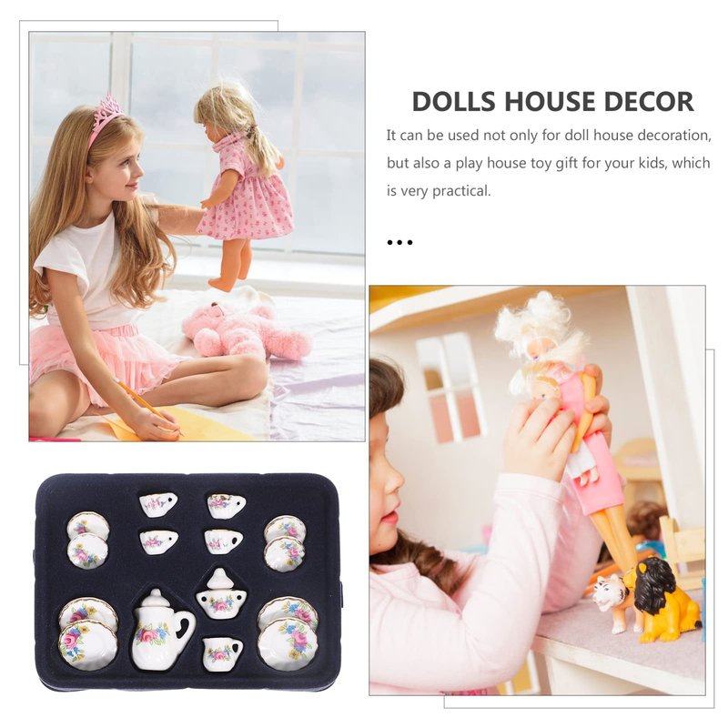 Toddmomy Miniature Tea Sets Dollhouse Porcelain Tea Set 1 12 Scale Miniature Dollhouse Accessories Kitchen Miniature Decor for Doll Toy Supplies