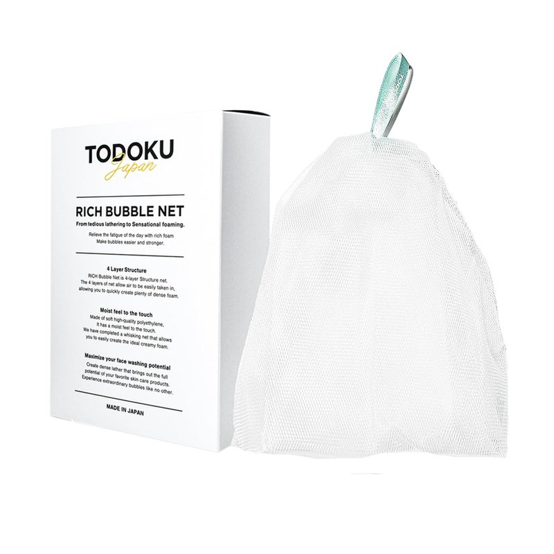 From tedious lathering to Sensational foaming. Relieve the fatigue of the day with rich foam Make bubbles easier and stronger 4 Layer Structure RICH Bubble Net is 4-layer Structure net. The 4 layers of net allow air to be easily taken in, allowing you to quickly create plenty of dense foam. Moist feel to the touch. Made of soft high-quality polyethylene, It has a moist feel to the touch. We have completed a whisking net that allows you to easily create the ideal creamy foam. Maximize your face washing potential Create dense lather that brings out the full potential of your favorite skin care products. Experience extraordinary bubbles like no other PRECAUTIONS FOR USE Do not pull net excessively, as doing so may cause unnecessary wear and tear. After use, rinse thoroughly and store in a clean environment. Keep away from heat, and do not leave in a warm environment. Replace the net every three to four months to maintain proper hygiene. Use only as directed. Wash Nets Size Item Length 1.96 Inches ~6.49 Inches Item Width 1.96 Inches ~6.49 Inches Item Height (Not incl Ribbon) 6.49 Inches Item Height (Incl Ribbon) 8.26 Inches