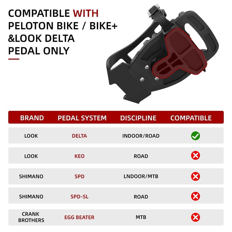 ONLY FOR PELOTON EXERCISE BIKES: The cages are specially designed for Peloton bikes pedals ONLY. Compatible with Peloton Bike and Bike+. Please note: NOT compatible with Shimano SPD/ SPD-SL, Crank Brothers Egg Beater and Look Keo system.