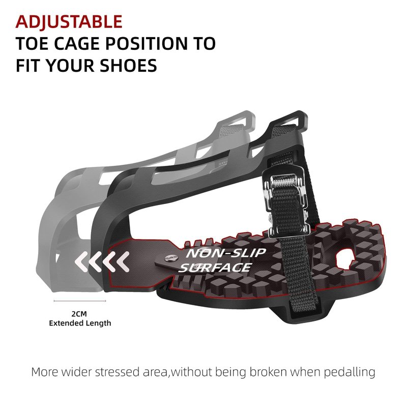 - CONFIDENT PEDAL: All QUTHZZHY toe cages are supplied by leading bicycle pedal manufacturers. Unlike other adapters that can break during riding, they have been reinforced to prevent pedal failure due to stress concentrations. Power is delivered directly to the crank, as heavy-duty polypropylene webbing holds your feet securely to the pedal.