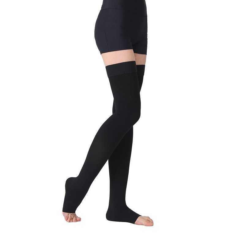 TOFLY® Medical Thigh High Compression Stockings for Women & Men (Pair), Opaque Open Toe 15-20mmHg Graduated Compression Hose, Medical Compression Stockings Support for Varicose Veins, Edema,Black M