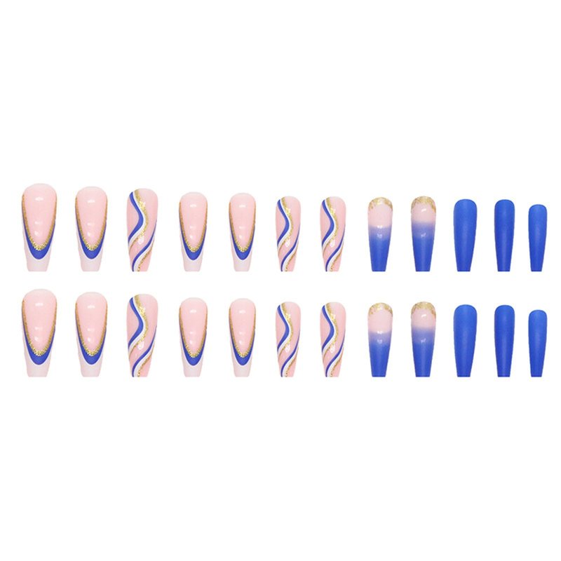 TOGZOM Ballerina Press-on Nails, Royal Blue, Medium Coffin, 24Pcs Set with Gold Glitter Design, Acrylic, Full Cover Glossy Glue on Nails for Women and Girls