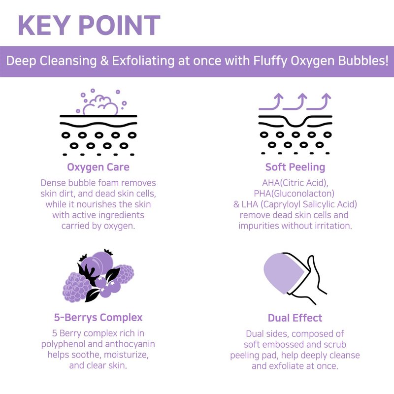 - Oxygen Care : Dense bubble foam removes surface dirt, while it nourishes and moisturizes the skin with essential ingredients carried by oxygen. Oxygen foam helps healthier and brighten skin tone, and you can feel instantly the smoothest skin ever.