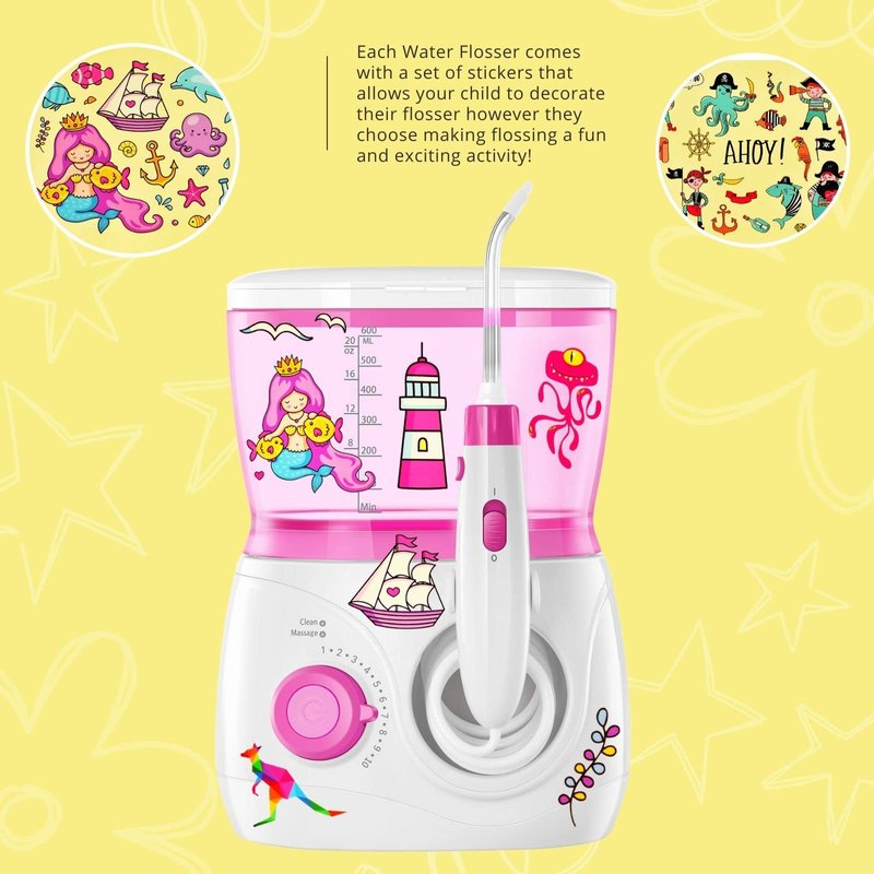 - BPA-Free Oral Irrigator: The Children's Countertop Water Flosser is completely toxin-free for extra-safe use; kids can also decorate it by attaching stickers